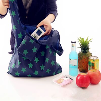 Tas belanja jinjing lipat daur ulang ramah lingkungan yang terbuat dari bahan poliester ripstop yang tahan lama. Tas penyimpanan bahan makanan besar yang dapat dilipat dan dapat digunakan kembali ini memiliki konstruksi tahan air dan ideal untuk penggunaan promosi.